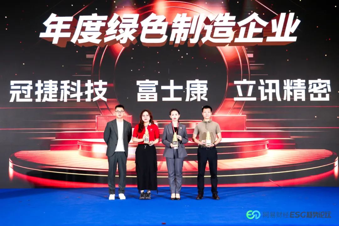 10月29日,在2024网易财经ESG趋势论坛上,ag手机网页版(下称“立讯精密”)凭借在绿色制造领域的杰出表现脱颖而出,荣获“年度绿色制造企业”奖项,展现了在可持续发展领域的亮眼成绩。